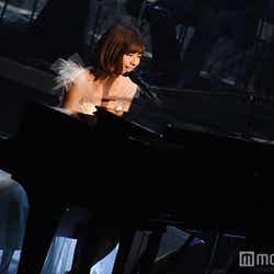 西野カナは今年9月にリリースした27枚目のシングル「トリセツ」で優秀作品賞を受賞。同楽曲について「実際の取扱説明書に近づけようとしました。言葉のニュアンスとか」と笑顔を見せ、「いろんな方の気持ちを込めた楽曲になりました」と想いを明かした。この日は取扱説明書をモチーフにし、本がたくさん並んだようなスカートが印象的な豪華ドレスで登場。澄んだ高音を響かせながら熱唱し、会場を魅了した。