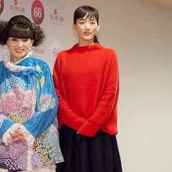紅組司会の綾瀬はるかが和装姿を披露した。大原櫻子、本番衣装で最終確認