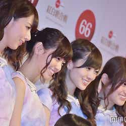 本番は波瑠や玉木宏ら朝ドラ出演者と共演も果たす。渡辺美優紀は「本当に素敵な女優さんや俳優さんの皆さんとステージに立てるっていうのが自分もびっくりしました」とコメント。そこで隣の山本が、「あさが来た」の主人公・あさの口癖“びっくりぽん!”を連想し、小声で「びっくりぽん」とつぶやき。渡辺もにっこり笑顔で「びっくりぽんで(笑)!」と続いた。今回の紅白ではSKE48、HKT48が落選、姉妹グループではNMB48だけとなるが、山本は「姉妹グループもAKB48さんに負けない勢いを見せつけたい」と意気込んでいた。