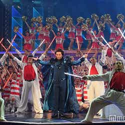 TOKIOは22回目の出場で「AMBITIOUS JAPAN!」を歌唱。バイオリンやトランペットを従えて明るいパフォーマンスを披露する。