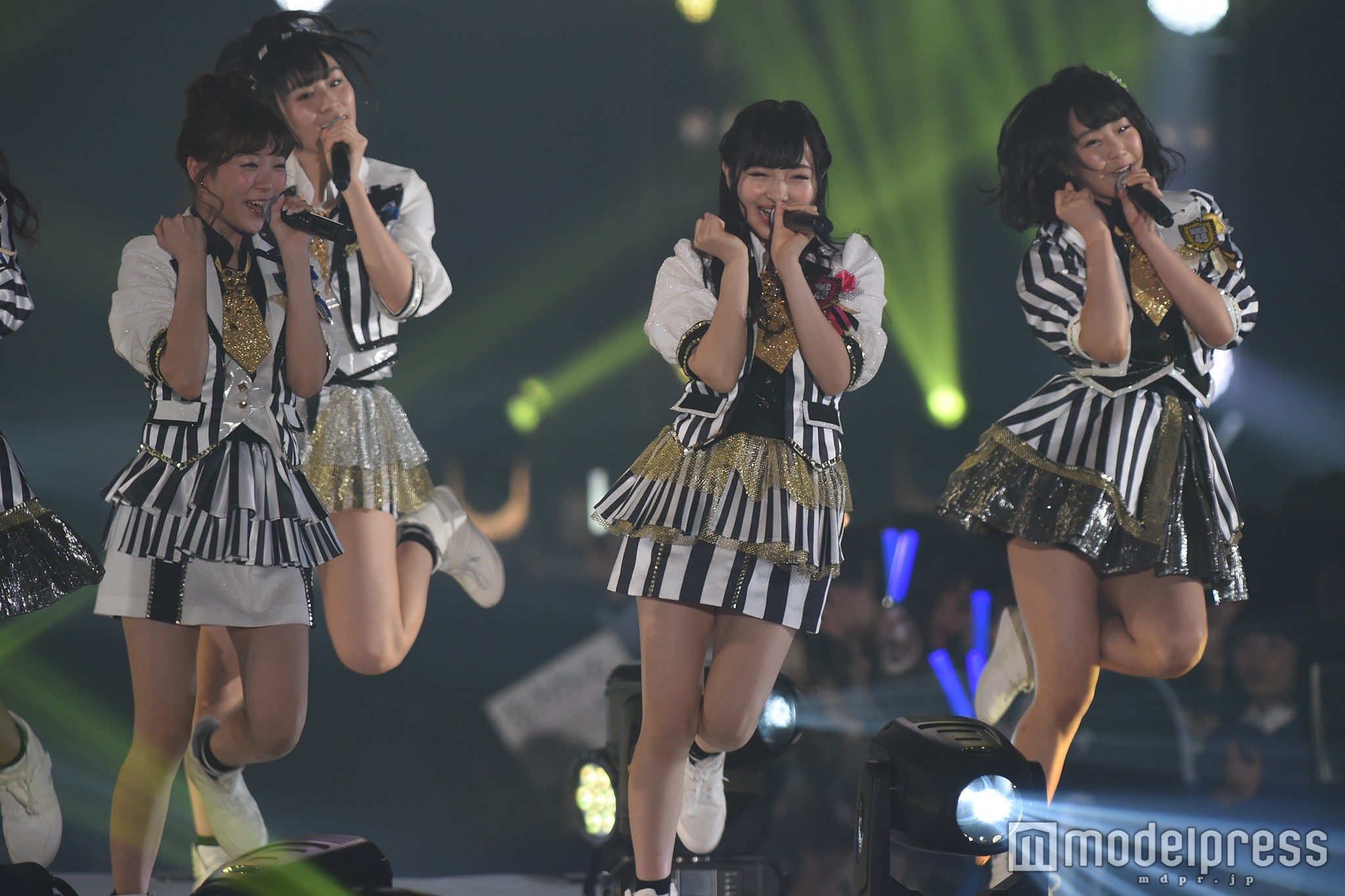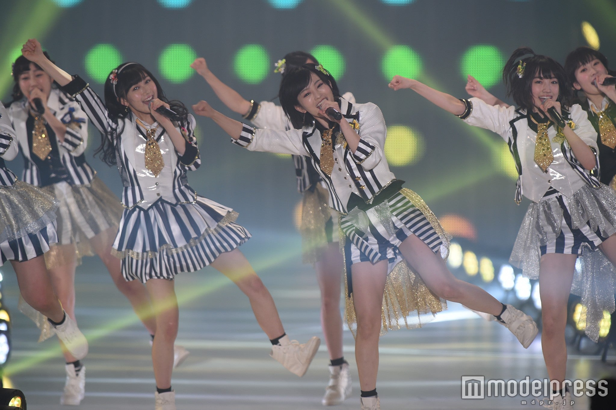 そのまま2ndシングル『オーマイガー!』へ。ランウェイステージを縦横無尽に駆けまわり、観客へファンサービスを連発し、会場の熱気は最高潮に達した。渋谷凪咲が「次が最後の曲になってしまいます。でも安心して下さい、最後に盛り上がる曲ありますよ」とリップサービス。須藤凜々花が「皆様パーリーピーポーだと思いますので、一緒にやって頂きたいのですけど宜しいでしょうか!?」と自身センター曲『ドリアン少年』での掛け声を一緒にするよう観客へ呼びかけ、ラストパフォーマンス。