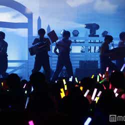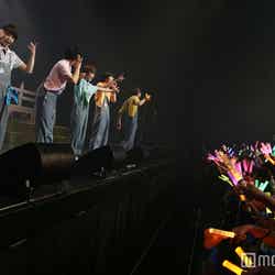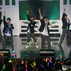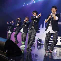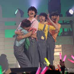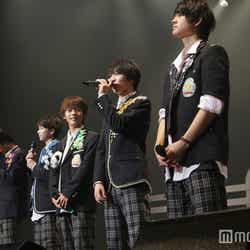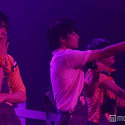 カントリー調のSEが流れる中、牧場をイメージしたステージセットの空が明るくなり、オーバーオールにTシャツ、ポロシャツ姿のメンバーが元気良く登場。ミルク缶やスコップを手に朝の作業を終えると、3月にリリースされた3rdシングル「新学期アラカルト」からライブがスタートした。「東京、盛り上がっていくぞー!」と佐野勇斗が声をあげ、塩崎太智がステージの最前列からファンを煽る中、すでにそれ以上の歓声と熱気が沸き起こった会場。懐中電灯を使ったコミカルなパフォーマンスの「gkbr」、自己紹介ソング「フレ!フレ!オレ!」など、ライブ前半は彼らのポップな魅力全開のナンバーがテンポ良く披露されていった。