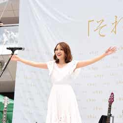 ミニライブでは、大勢のファンから声援を贈られながら、フジテレビ系ドラマ『早子先生、結婚するって本当ですか?』(毎週木曜午後10:00)の主題歌にもなっている「それでしあわせ」を含む4曲を熱唱。新曲「それでしあわせ」については、「今までは自分が経験してきたことだったり、等身大の恋愛というものをテーマに書くことが多かったのですが、今回は、“幸せ”という、もの凄く壮大なテーマに挑戦して書いた曲です」と、大きな挑戦だったという。