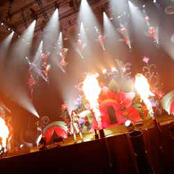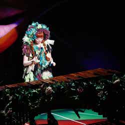 そして『コスメティックコースター』では、ピンクを基調とした60's風のワンピースに傘をさし、シャボン玉が舞う中、ステージ上を優雅にフライング。ライブ初披露となる『KISEKAE』では、きゃりーと観客が一緒にペンライトを振りながら色をチェンジして、会場を“着せ替え”する場面も見られた。