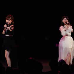 続くデュエット曲「禁じられた2人」では、まさかの出来事が。まず伊豆田莉奈が登場し、相手に注目が集まる中、登場したのは、足の怪我で横浜アリーナ公演への休演が発表されていた小嶋陽菜。サプライズ登場に、会場が大歓声に包まれ、小嶋は歌い終えると「怪我をしていも、いずりなの相手くらいなら出来る」と一言。「いずちゃんは、来年も圏外よ!」と言い残して、颯爽と横浜アリーナに向かっていった。さらに、グループシャッフルも実施。「孤独なランナー」ではNGT48の研究生・大滝友梨亜、「LOVE TRIP」ではチーム8の小栗有以が、それぞれセンター務めるなど、各グループから選ばれたメンバーが一夜限りのチーム編成でステージを彩った。