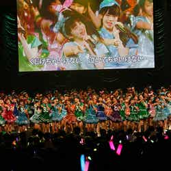 同コンサートには、選抜総選挙で圏外だったメンバー192名のうち、185名が集結。アンコール後に順位が発表され、ギリギリ圏外となってしまった81位に呼ばれたのはNMB48の市川美織。市川は、名前が呼ばれると驚きと涙で顔をぐしゃぐしゃにしていた。