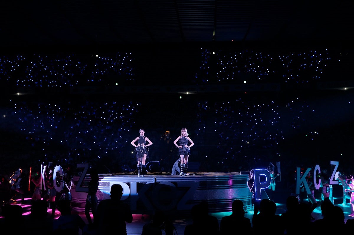 ブラックの衣装に身を包んだ2人のキレのあるダンス、甘く伸びやかな歌声に観客は熱狂。鍛え抜かれたパフォーマンスと美しい光の融合で、歴史的な開幕戦を華やかに彩った。