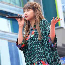 司会の呼び出しの後、1曲目「Want Your Love」で、通行中の人々が足を止めてしまうほどの美声を渋谷の街にしっとりと響かせて魅了。歌い終えると、ファッションショーの感想とともに、「こうやってステージから見ていて、お祭りのようで楽しいです」と笑顔を弾けさせた。さらに、「Let's start over again」では、ステージを囲む観客に手を振りながら、キュートなパフォーマンス。しかし、自身初の主演映画「CUTIE HONEY -TEARS-」の主題歌で、作詞も手掛けた「BELIEVE」では一変。笑顔を封印して、切なくも力強い歌声が冴えわたるミドルチューンを堂々と歌いきった。