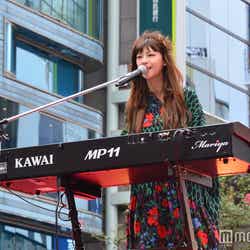 そして、MCでは「渋谷に私が来たのは約10年前。大きな夢と希望を持って東京に来て、モデルのお仕事をしていたので、ファッションの勉強のために、毎日のように渋谷や原宿でぐるぐるとウィンドウショッピングをしていました」と思い出を紹介。自身を育ててくれた街で歌うことに感慨深さを感じつつ、「みなさまへの感謝の気持ちを込めて歌います」と、初めて作詞作曲を手掛けた「ありがとうForever…」をピアノの弾き語りで歌唱した。最後の曲の前に、「今後も作詞作曲は続けていきたいので、自分でもクリエイティブなことをしていきながら、みなさまにもお届け出来たらな」と意気込むと、会場から温かい拍手。その後、観客との別れを惜しみつつ、「最後はハッピーに盛り上げたいな」とPOPチューン「HellO」を可愛らしいダンスとともに披露して、聴衆を引き込んだ。(modelpress編集部)