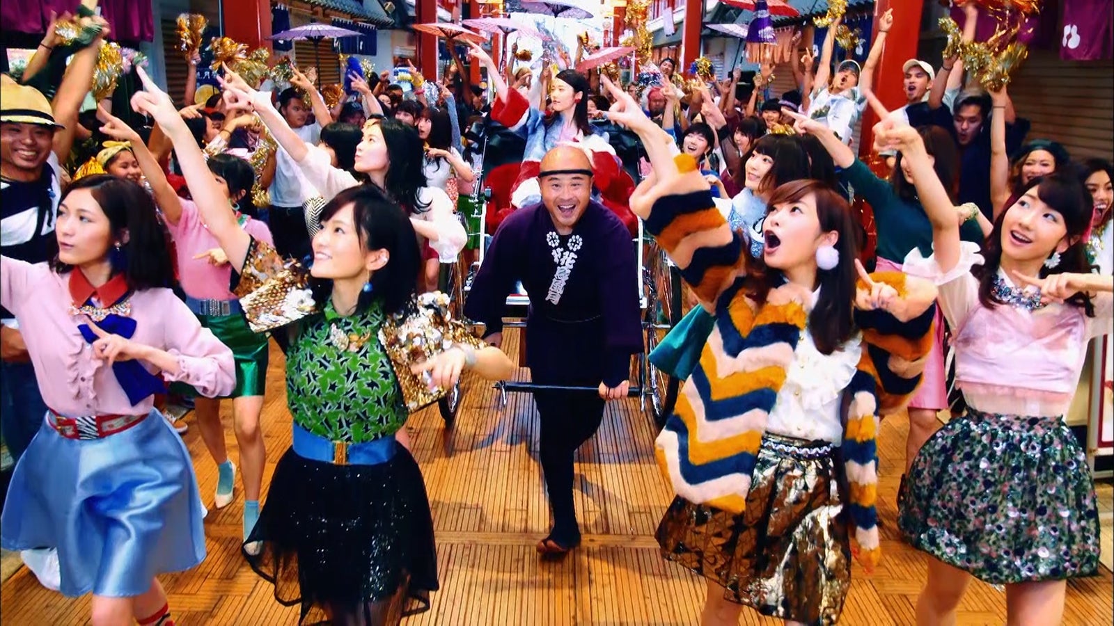 MVには、学校や企業など約 1400人のエキストラ、そしてゲスト出演者にはAKB48のMVに2度目の出演となる田原総一朗、俳優の遠藤憲一、ものまね芸人ニッチロー、そしてPepperくんも出演。ロボットレストランや商店街、結婚式、そして船上パーティーとバラエティ豊かなシチュエーションで撮影を行った。