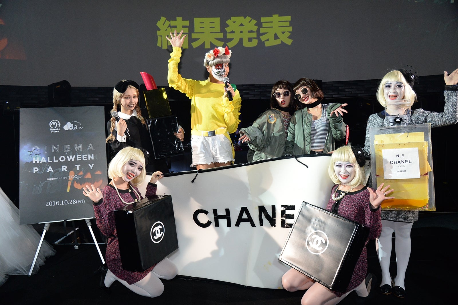 CSの映画専門チャンネル「ムービープラス」や、女性向けエンターテインメントチャンネル「女性チャンネル♪LaLa TV」、そして東京ガールズコレクションの公式ナイトパーティ「TGC Night」が共同で実施する同イベントは、これまでありそうでなかった映画と ハロウィンが融合した、今までにないハロウィンイベント。DJが様々な映画の世界感をサウンドデザインし、360度のパノラマスクリーンを最大限に活用したド迫力映像で興奮の渦を巻き起こした。イベントには、人気読者モデルの“ぺこちゃん”ことオクヒラテツコや、ぺこの彼氏・りゅうちぇるの弟分として人気急上昇中のけーしゃんが、個性的なコスプレ姿で登場。DJ陣にはErieほか、モデルの中田クルミ、AMIAYA、SAKI SATO、美しすぎる女性DJ MARIA FUJIOKAらも出演した。