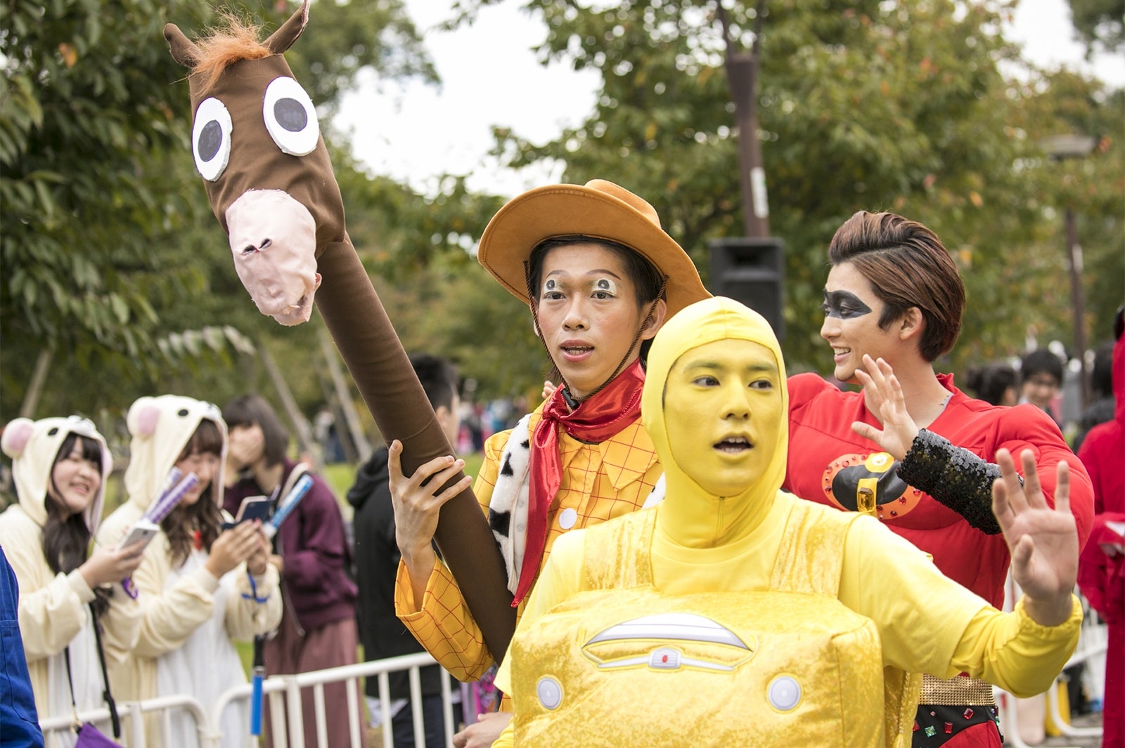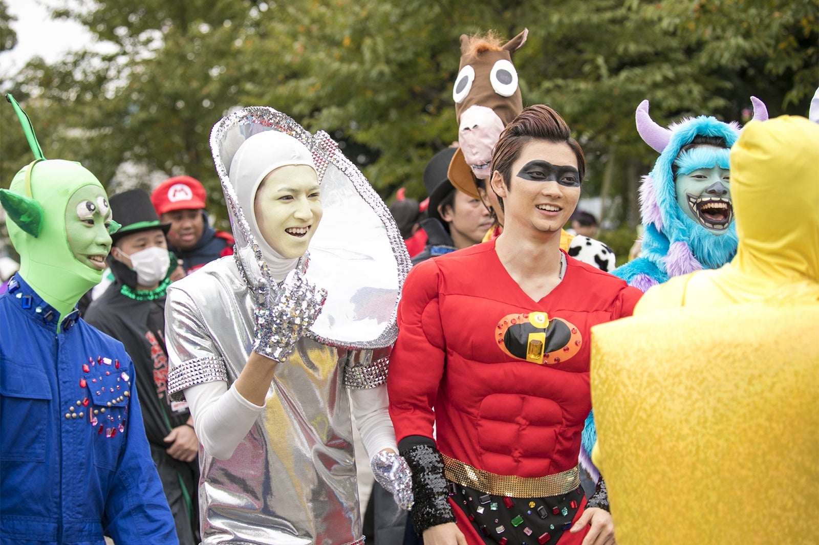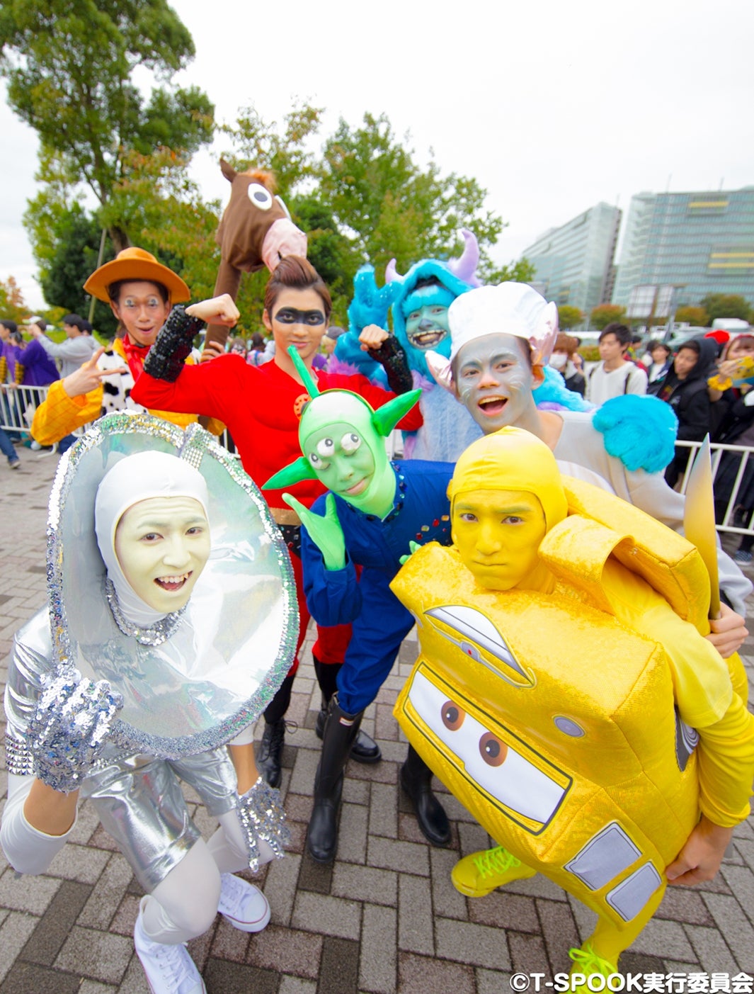 この日の仮装は、コーイチが「モンスターズ・インク」のサリー、カイが「レミーのおいしいレストラン」のレミー、リョウガが「トイ・ストーリー」のウッディ、タクヤも同じく「トイ・ストーリー」のリトルグリーンメン、ユーキは「Mr.インクレディブル」のボブ、ユースケは「カーズ」のライトニング・マックィーンと人気作のおなじみのキャラクター。タカシはピクサー作品に登場するスタンドライトとコアな仮装でキャラクターになりきった。ウッディの仮装のリョウガは、まぶたにウッディの目のメイクを施し、目をつむってウッディに変身。コーイチが「何で目をつむったら完成するの?」と声をかけると「前も目をつむったら完成する仮装をしまして。写真を撮るときにも『目をつむって』と言われて…(笑)」と裏話を明かした。