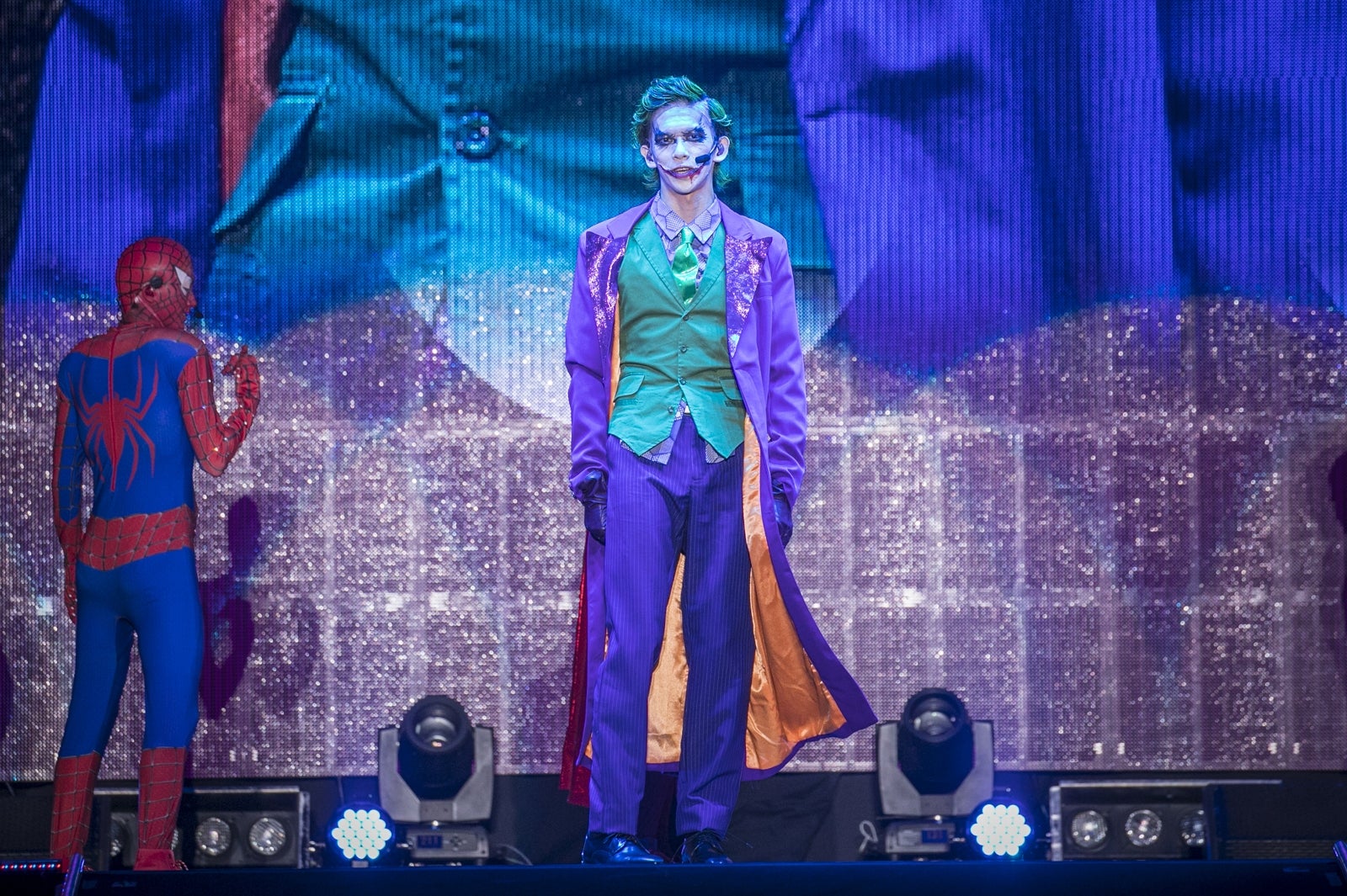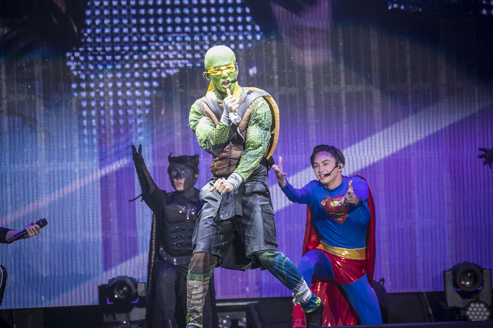 これまで「スターウォーズ」「スタジオジブリ」「ピクサー」など、さまざまな仮装でライブを行ってきた彼ら。その完成度の高さで8号車(ファン)を驚かせてきたが、この日はアメコミヒーローの仮装で登場。コーイチはバットマン、カイはキャプテン・アメリカ、リョウガはジョーカー(バットマン)、タクヤはスーパーマン、ユーキはスパイダーマン、ユースケはマイキー(ミュータント・タートルズ)、タカシはストーム(X-MEN)の仮装をした。