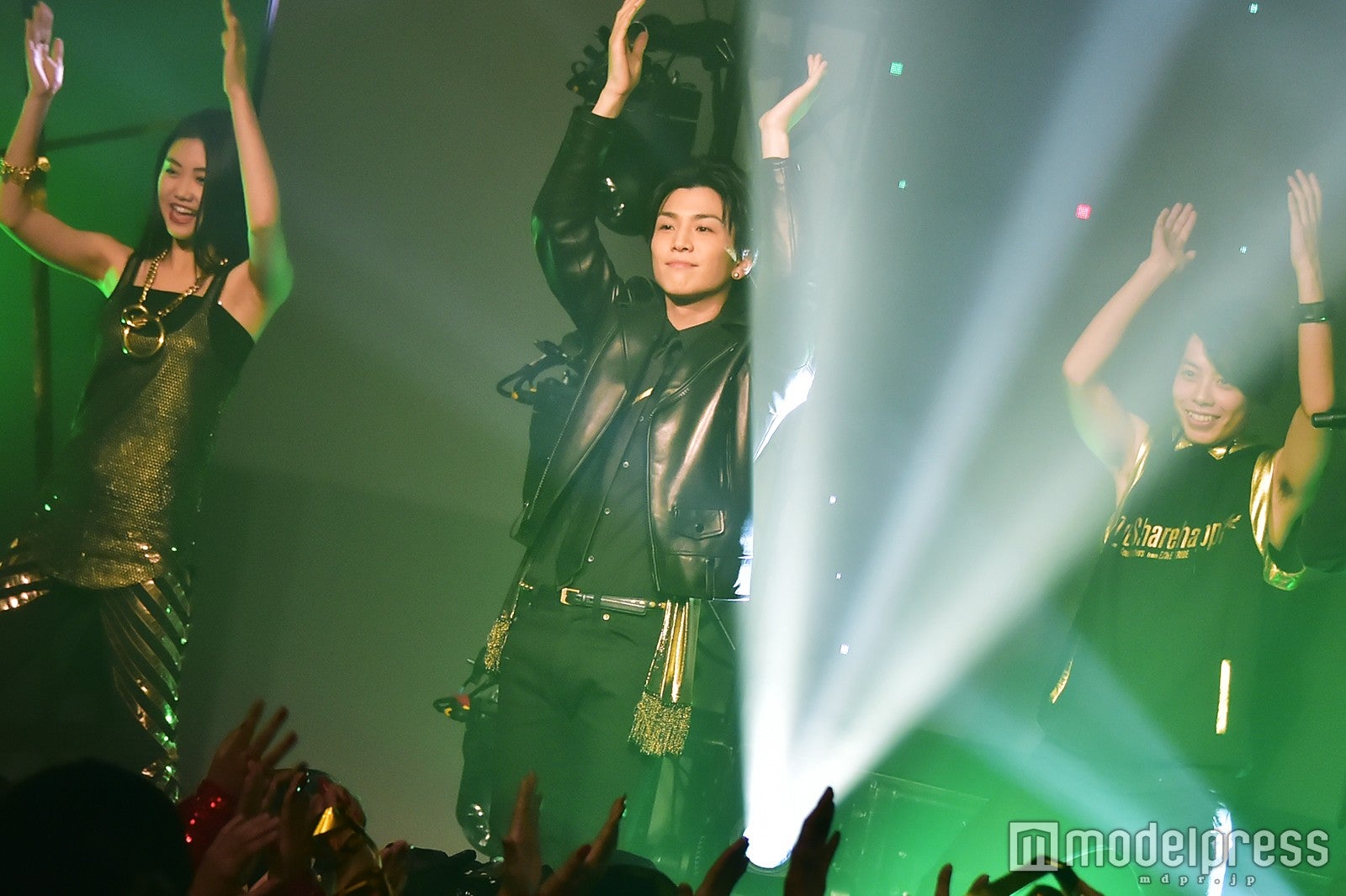 黄色い歓声がこだまする中登場した3人は、「Share The Love」を含む2曲をパフォーマンス。腕を上に振り上げる“シェアハピダンス”でファンを熱狂させた。