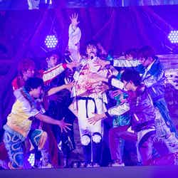 MCでは、バンパイアが登場しバトルを繰り広げる場面も。「8号車は俺たちが守る!」と殺陣やアクションで男を見せる超特急。そして、続く「Yell」では、観客による撮影OKタイムを設置。これは超特急ライブ史上初の試みで、カイは「インスタグラムとかツイッターとかにアップして、世界中で共有して」とアピール。タクヤは、ピコ太郎の世界的ブレイクのきっかけとなったジャスティン・ビーバーの名前をあげて「みんながジャスティン・ビーバーに送ったらいいんだよ」と笑いを誘った。