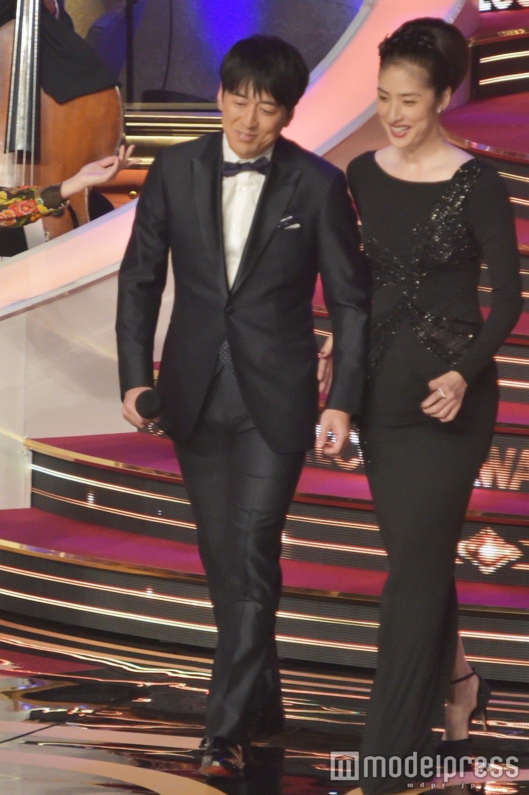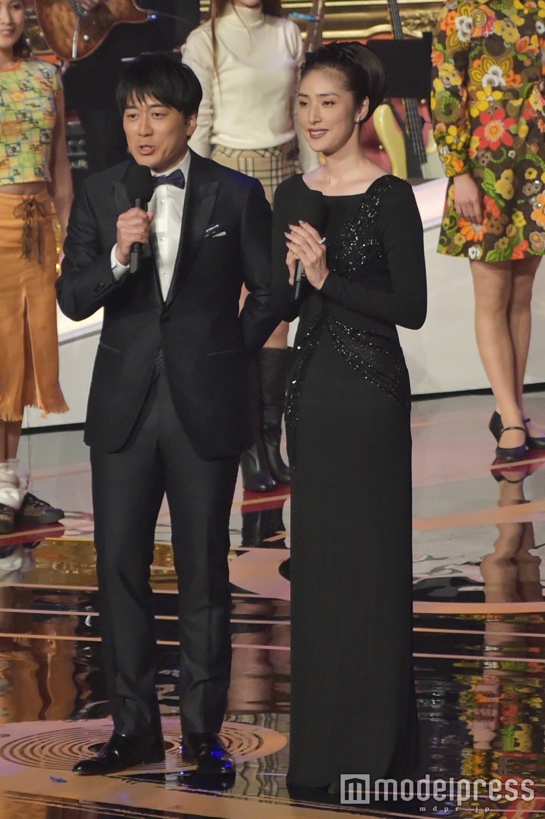 総合司会を務めるのは、初挑戦となる女優の天海祐希と安住紳一郎アナウンサー(TBS)。髪を結わえ、ブラックドレスに身を包んだ姿で登場した天海。安住アナにエスコートされながらステージに移動すると、安住アナから「今年のステージに華を添えていただきます、天海祐希さんです。緊張しているんですけど、緊張していない体質のようで」と紹介された。天海は「緊張しているんですけど、緊張していない風を装っています。だってこのステージですよ?素晴らしいですよね」と返し、初司会の緊張を物ともせず、落ち着いた様子で進行した。