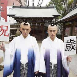 次世代型ダンスロックバンドDISH//のメンバー・龍二と、1月1日よりDISH//に加入した元カスタマイZの大智が8日、新成人として恵比寿神社を訪問。羽織袴に身を包んだ2人は、DISH//結成5周年、そしてハタチという節目に新メンバーが加入したことで“心機一転、新たにスタートする”という意味を込めてスキンヘッド。さらに、髪の毛で“2”と“0”の文字がかたどられており、ネット上では「スゴいな2人とも」「TVとかで色んな新成人見たけど、この2人が今年の優勝候補かも」などと話題になっている。