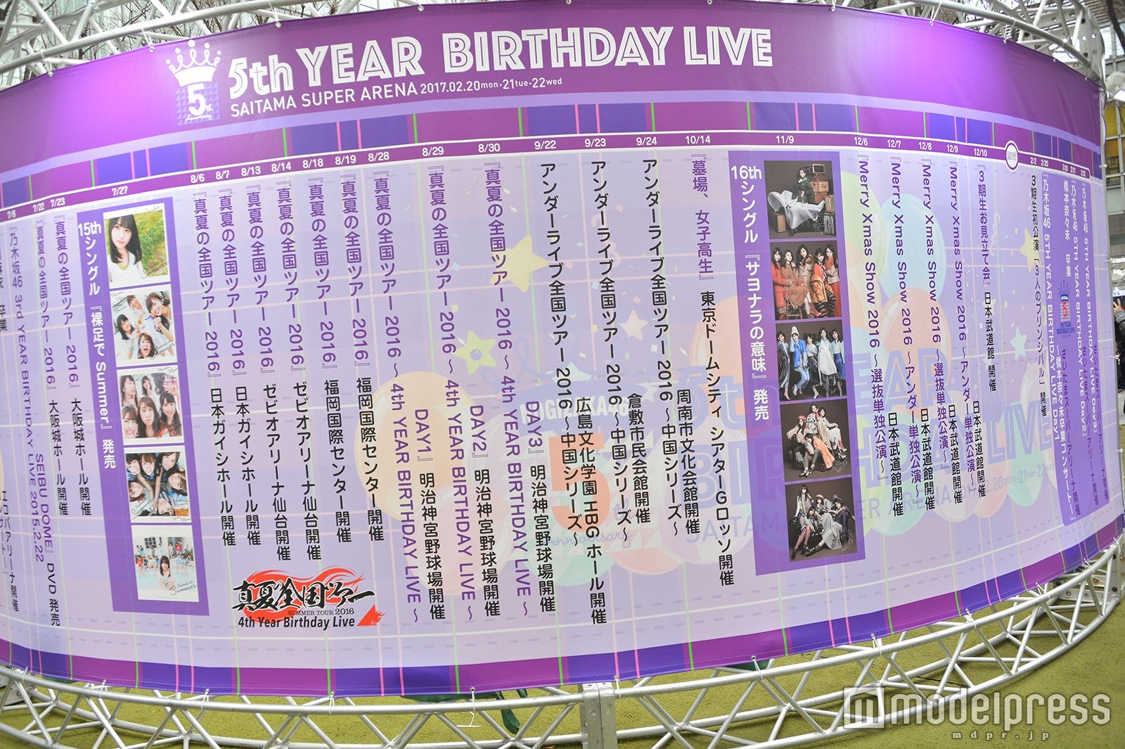 さらに、グループの5年半の歴史を振り返る巨大年表も登場。歴代卒業生らの名前なども記され、ファンは年表をじっくりと読み、デビューからの懐かしい出来事を振り返っていた。(modelpress編集部)