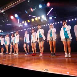 この日の公演には、博多から多田愛佳(HKT48・4月10日に卒業公演予定)、ユニットやMCでは卒業メンバーの菊地あやか、浦野一美や平嶋夏海らも駆けつけ、チームB結成当初から応援しているファンにとって懐かしい、総勢12名での公演に。幕が開くと、椅子に座った渡辺麻友が足を怪我して劇場公演に出られなくなった当時のパロディーで始まり、会場からは笑いが起こっていましたが「今日は元気でーす!3期生10周年公演始まるよ~!」とハイテンションな掛け声でスタート。Overtureのあと「青春ガールズ」でメンバーのシルエットが映ると、会場内だけでなく劇場全体が、これから楽しい公演が始まりそうな期待感に溢れた歓声が地響きのように沸き起こり、「ワッショイB!」「B Stars」などの懐かしいレパートリーに冒頭からメンバーもファンの皆様もテンションマックスに。