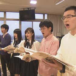 全校生徒28人で合唱に取り組んでいる同校では、4月に入学したばかりの1年生と一緒に課題曲「願いごとの持ち腐れ」を練習中。地域の人々もその歌声を毎年楽しみにしているという三高中の子どもたちと一緒に課題曲を歌う。