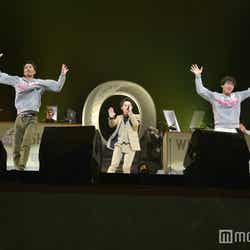 「ひっくり返しに来たぜ!!」の言葉とともに、ギターを手に取り、1曲目『Double Down』でライブ開幕。一気に会場のボルテージを引き上げ、『Ms.Liverty』『BIG PARADE』と立て続けに披露。ダンサーと息ぴったりの踊りをみせ、観客の目は釘付けとなった。