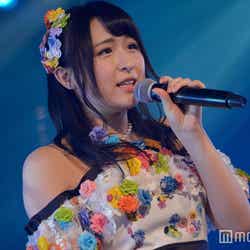 冒頭4曲でラストに歌唱した『唇に~』は、元メンバーの高橋みなみがセンターを務めたシングル。同公演でセンターに立った峯岸は「今は亡き高橋みなみの代わりとして」とジョークをまじえて紹介し、「たかみなみたいに公演自体もひっぱっていけるように頑張りたい」と意気込み。岩立はランクイン順にメンバーが選ばれていることに触れ、「卒業した人がいるからギリギリ滑りこめました」と改めてファンに感謝した。