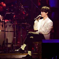 また冒頭で「より近くで皆さんと一緒に過ごしたい」と述べた通り、会場のファンと言葉を交わし、交流する場面も多数。チェアに腰掛けて歌唱する際には、両端のファンに目配せしながら、姿が見えやすい位置にチェアを動かすなど、細やかな気遣いが感じられた。
