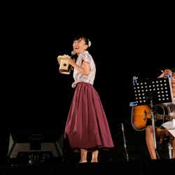 その後のMCでは三線奏者・堀口加奈子を呼び込み「島人ぬ宝」、「涙そうそう」を三線、アコースティックギターと共に歌唱。