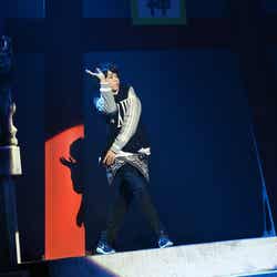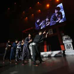 続いて「普段やらないような懐かしい曲を」とソロコーナーへ。まずはスタジャンを羽織った太智&吉田仁人が、アクロバットも取り入れながら「ステージ」を決め、歌唱力の高さで知られる山﨑悠稀は「君とダンスナイト」をファルセットも交えつつキュートに熱唱。「ひこうき雲」では佐野勇斗と板垣瑞生が1階席の中央に作られたサブステージでデュエットしたかと思いきや、太智は鳥居前でバク転からのソロダンスで躍動感いっぱいに魅せた。さらに、新曲「夢がまだ」を情熱的に贈った仁人は、踊りながら口にくわえていた青い薔薇をそのまま客席へ。ラストの「my world」では悠稀と瑞生が共にしっとりと歌い上げて締めくくった。