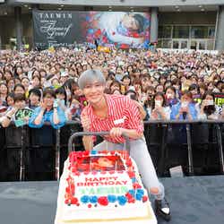 今月1日・2日には、夢であったソロ初単独公演「TAEMIN THE 1st STAGE 日本武道館」を開催し、両日合わせて28000人を動員。ピアノ弾き語りで熱唱した「いつかここで」について「感情を込めて歌いました。伝わったかな?」と振り返る。「準備期間が少なかったんですけど、皆さんが喜ぶ姿を想像しながら準備しました。心に刺さる経験となりました」と思い入れの深い公演に。メンバーのオンユ、ジョンヒョンも駆けつけたといい「すごく楽しかったと言われて嬉しかったです。僕のことを信じてくれているので、遠くからわざわざ観に来るのは想像できなかったんですけど、いきなり『テミン来たよ~!』と登場して『なんだ~!』って(笑)。その前に電話もくれたので、緊張感がなくなってよかったです」と感謝していた。日本デビュー5周年となるSHINeeは、9月に東京ドーム&京セラドーム大阪公演が控えており、テミンは「初めてドームに立った時の感動を忘れずに、もう一度立つことのできる機会に感謝しながら、一生懸命準備するので期待してください」と意気込み。バースデーケーキのロウソクを満面の笑みで吹き消し、ファンへ向けて「夏バテしないように体に気をつけて!」と呼びかけていた。
