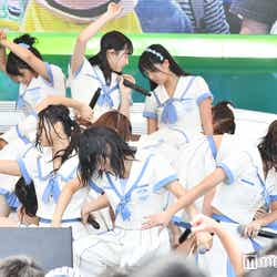 3年連続同イベント出演となるSKE48は、HOT SUMMERスタジアムのメインステージ「HOT STAGE」の最終日トップバッターに登場。サマーチューン『パレオはエメラルド』で開幕すると、『賛成カワイイ!』『未来とは?』とアッパーチューンを立て続けに披露し、最終日のホットステージを一気に温め、江籠裕奈は「頭から靴を脱ぐくらい踊ってます」と激しいダンスゆえのハプニングを明かし、笑わせた。