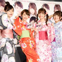 オフィス系アイドル・カプ式会社ハイパーモチベーション(通称:ハイモチ)が15日、東京・渋谷のDESEO mini with VILLAGE VANGUARDにて、デビューシングル「100%☆モチベーション」の発売記念ワンマンライブを開催。キュートな浴衣姿を披露して、2年目へ向けた意気込みを語った。