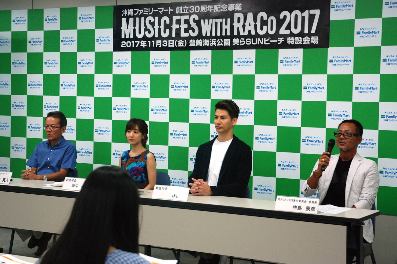 21日、RACo FES 実行委員会が沖縄県で会見を実施。11月3日に沖縄県・豊崎海浜公園 美らSUNビーチの特設会場にて、「沖縄ファミリーマート創立30周年記念事業 MUSIC FES With RACo2017」を開催することを発表した。