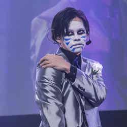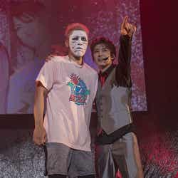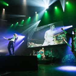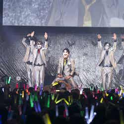 そして「ザ・V系っぽい曲」では、タカシを筆頭に楽器をもった超特急メンバーがステージに乱入。ヘッドバンギングで盛り上がる同曲で、超特急も激しく頭を振り、鬼龍院は「超特急のみなさん、力を貸してくれてありがとう」と感謝。代表曲「女々しくて」で自身のパートを締めくくったゴールデンボンバーだが、会場はハンズアップで一体となった。