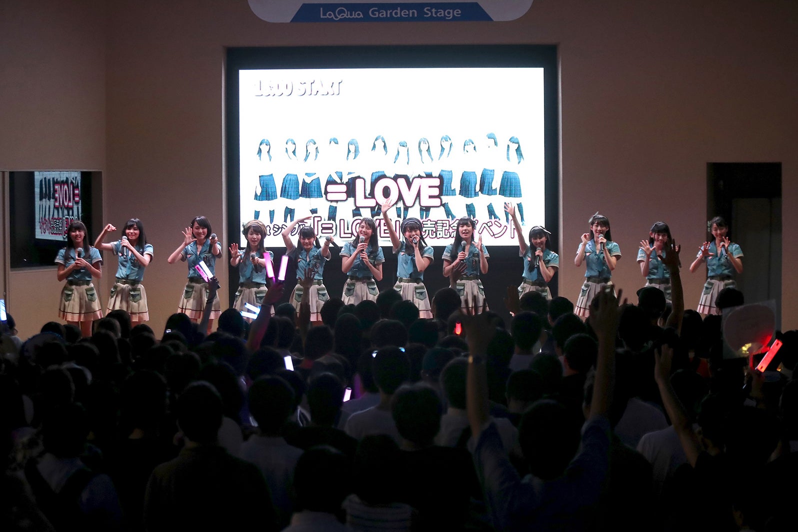 その後、メンバーはラクーアガーデンステージに移動してデビュー記念イベントを開催。会場には2,000人のファンが詰めかけた。1曲目は『=LOVE』のショートバージョン。その後カップリング曲の『記憶のどこかで』『スタート!』を立て続けに披露し、最後は『=LOVE』のフルバージョンを披露し、大盛況のうちにライブが終了した。その後はグループごとに分かれての握手会。デビューを祝う大勢のファンが、メンバーに直接お祝いのコメントを伝えていた。(modelpress編集部)