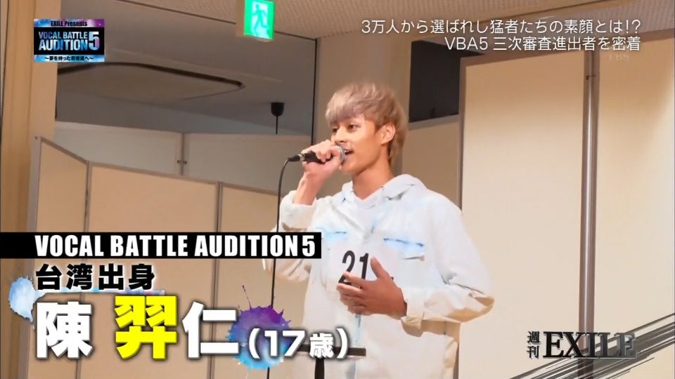 11日深夜放送の「週刊EXILE」(TBS系、毎週月曜深夜25時28分~25時58分)では、ボーカリストを目指す若者達を対象としたオーディション「EXILE Presents VOCAL BATTLE AUDITION5~夢を持った若者達へ~」(=VBA5)の審査の様子が公開された。