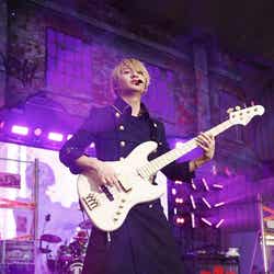 また、バンドだけではなく、「HIGH VOLTAGE DANCER」や「It's alright」では楽器を演奏しながら踊り、ライブ定番曲「ザ・ティッシュ~とまらない青春 食欲編~」では演奏の途中で楽器を外し、ダンサーとともにキレのいいパフォーマンスを披露。さらに、ステージを降りて客席で雨に打たれながら歌うなど、多様なスタイルで観客を楽しませた。