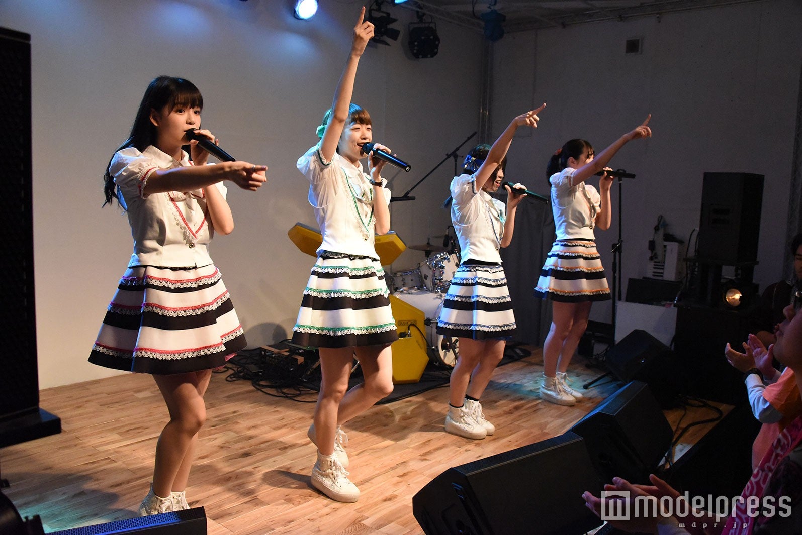 また、今年の3月に高校を卒業した鶴巻は、「私は14歳くらいから活動をさせて頂いています。最初は中学生なので、イベントでは20時で『皆さん、さようなら』みたいな感じだったのですが、もうすぐ19歳になっているのです」と驚き。最後の曲として、14日から配信リリースされる『Orion』を披露することになり、鶴巻は「前に来て最後の曲を聴いてください!」と会場のファンに呼び掛けた。ファンたちがステージ下の最前列まで詰め掛けると、熱い視線を間近で浴びた鶴巻は「そんなにスカートを見ないでよ!」とおちゃめな笑顔を浮かべ、ファンを悩殺した。