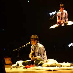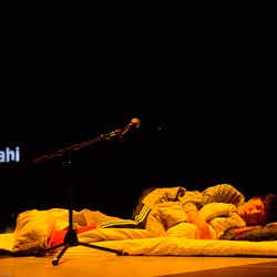 ステージ中央に敷かれた布団。携帯を片手にバイト先に欠勤連絡…という設定で登場した森山直太朗。このシチュエーション通りの歌詞で始まる『レスター』を、ギター1本で歌い上げる。「ドリフェスの舞台に立つのは長年の夢でした」と語り、ピアノやバイオリンのバンドをバックに、『魂、それはあいつからの贈り物』『夏の終わり』とアリーナに歌声を響かせる。その後も名曲『生きてることが辛いなら』などを披露した。(modelpress編集部)テレビ朝日ドリームフェスティバル2017