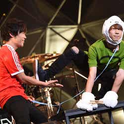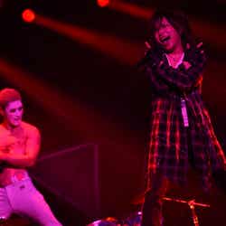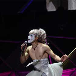 お揃いの衣装を纏ったダンサーを従え、登場したのはこの日紅一点の出演者である西野カナ。途中、早着替えもみせながら、『GIRLS GIRLS』『UNZARI』とメドレーで披露。普段の彼女のイメージとは少し違うクールな楽曲でオープニングを迎える。「ちょっとアウェイなんちゃうかな?とドキドキしていたんだけれど、普段とは違うアーティストさんとご一緒できるということを楽しみにしてきました!」と呼びかけると、フロアから「かわいい!!」とういう声がとび、その声に「ありがとう」と丁寧に応えた。デビュー10年目に感じた“絆”や“感謝の大切な気持ち”をつづった『手をつなぐ理由』を歌いあげると、ラストは、ピンクのラメテープが舞うなか、『トリセツ』でフィナーレを迎えた。ゴールデンボンバー