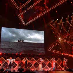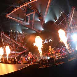 2014年以来、2度目のドリフェスへの参加となるゴールデンボンバー。モニターに出演者アナウンスが出るやいなや、鬼龍院翔、喜矢武豊、歌広場淳、樽美酒研二がステージに走り出る。“今日は何をやってくれるのか?”という期待感のなか、『#CDが売れないこんな世の中じゃ』、『元カレ殺ス』と続けてパフォーマンス。メンバーは縦横無尽にステージを走り回ってオーディエンスを煽り、鬼龍院の伸びやかなボーカルはアリーナに響く。MCでは、「LUNA SEAさんは嵐を呼ぶバンドですよね」(喜矢武)「西野カナさんの大ファンなんです」(樽美酒)と語り『抱きしめてシュヴァルツ』へ。すると、喜矢武の衣装が嵐(強風)に吹き飛ばされパンツ一丁に、西野カナ風の衣装の樽美酒の衣装も吹き飛ばされTバック姿に。「怒られる~」(樽美酒)と撤収したあとは、新曲である『やんややんやNight ~踊ろよ※※~(※※=都道府県名)』の埼玉バージョンを披露。盛り上がり要素を詰め込んだ振りのある楽曲に、ファンのみならずアリーナ全体が盛り上がり揺れる。その勢いのまま、お待ちかねの『女々しくて』へ。エアバンドとして、最高のエンターティメントを披露した。