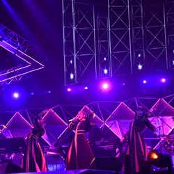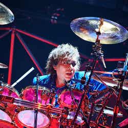 この日のトリを飾ったのはLUNA SEA。モニターにLUNA SEA の登場が告げられると大歓声が上がる。ベートーヴェン「月光」をバックに、メンバーが手を挙げて声援に応えながら登場し、最後にRYUICHI(Vo)がセンター位置につくと、真矢(Dr)が怒涛のビートを叩きこみ、1曲目は『Anthem of Light』へ。続いてキャノン砲があがりオーディエンスの高ぶる気持ちを更に盛り立て、『TONIGHT』へ。INORAN(Gt)はセンターステージに進みメロディを奏で、SUGIZO(Gt)とJ(Ba)はそれぞれサイドーステージへ進み、その圧巻のパフォーマンスを見せつけてくれた。MCでRYUICHI(Vo)は、バンドがもうすぐ結成30周年になることを告げ、この日一緒にドリフェスに出演する後輩たちのパフォーマンスを「とってもワクワクしながら観ていた」と語る。『Face to Face』など初期の楽曲から、『I for You』『STORM』『DESIRE』『TIME IS DEAD』までを披露し、この日初めてLUNA SEAを見たという年代のオーディエンスも、彼らの世界に引き込まれた様子。ラスト、「お前ら全員でかかってこい!!」とRYUICHI(Vo)が叫んで『WISH』へ。アリーナから「ラララ」とシンガロングが巻き上がると、宙に銀テープが放たれた。