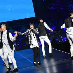 Special Nightのこの日のトップバッターは、三浦大知。6名のダンサーとともに登場すると、『(RE)PLAY』からスタート。ダイナミックなダンスと圧巻のボーカル力で、一気にオーディエンスを引き込んでいく。続いて「テレビ朝日ドリームフェスティバル、楽しむ準備は出来てますか!?」とフロアに呼びかけて、『Right Now』『music』を披露。オーディエンスは、それぞれクラップや歓声で応えヒートアップしていく。「皆さん、それぞれ応援しているアーティストは違うと思いますが、音楽で垣根を越えて1つになれたら嬉しいなと思います!」と思いを伝えると、花道を進みながら最新シングル『U』へ。そして「ダンスナンバーが続きましたので、ここでバラードをお届けしようと思います」と、『ふれあうだけで~Always with you~』を、アカペラで歌いだし、一瞬静まり返った満員のアリーナが感嘆と興奮に包まれる。その空気感のまま、『SING OUT LOUD』『EXCITE』、ラストは再びダンサーとともにキレ味のあるダンスで『Cry & Fight』でフロアを魅了し、ライブを締めくくった。