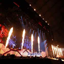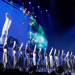 2012年2月のCDデビューから約5年8ヶ月で初となる東京ドーム単独公演。「真夏の全国ツアー2017 FINAL!」最終日の影ナレは生駒里奈、生田絵梨花、星野みなみの“生生星”、乃木坂46が坂を上り始めたばかりの時にフロントをしていた3人。粋な演出に会場につめかけた5万人はすでに胸の高鳴りが止められない。そしてオープニング楽曲は『制服のマネキン』。女子高生と警備員に扮したダンサー460人のフラッシュモブからメンバーが姿を現すと、地鳴りのような歓声が東京ドームに響きわたった。会場全体を使った圧巻のマネキンダンス。そしてセンター・生駒里奈の目が光る。これから約3時間半にわたって“伝説”が繰り広げられることを予感させた。「夏のFree&Easy」「裸足でSummer」夏曲で一気に攻める