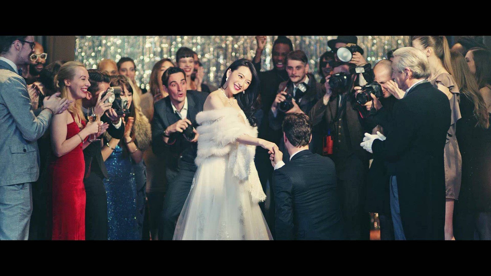 クライマックスのドレスシーン時に身に着けているジュエリーの輝きに、JYのテンションは最高潮に。この日一番の笑顔が飛び出した。
