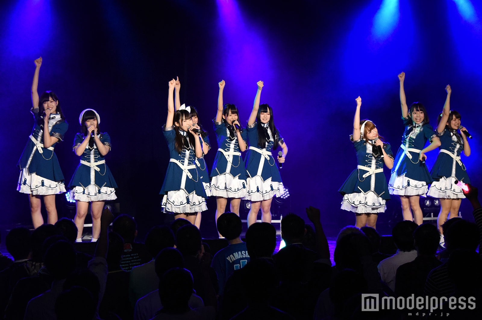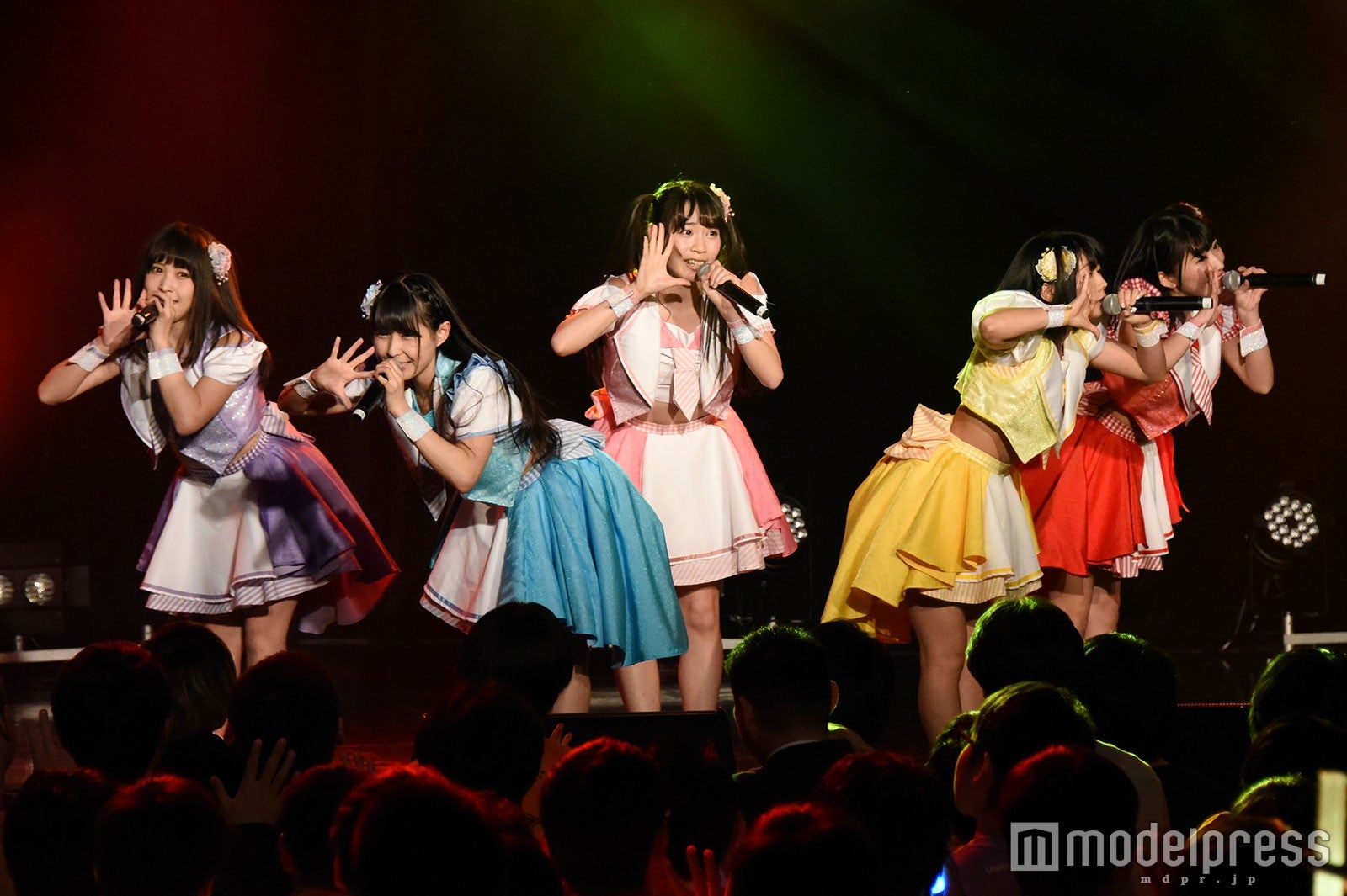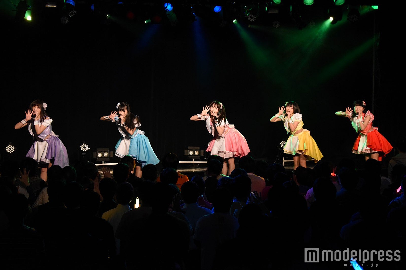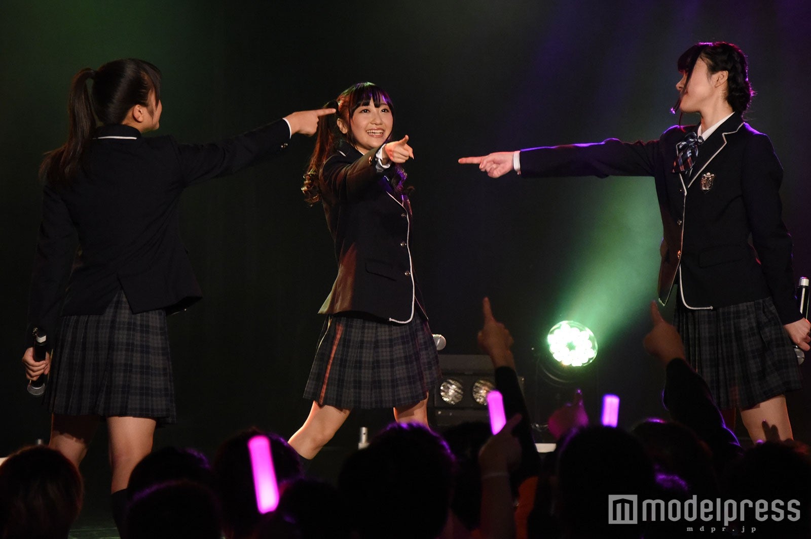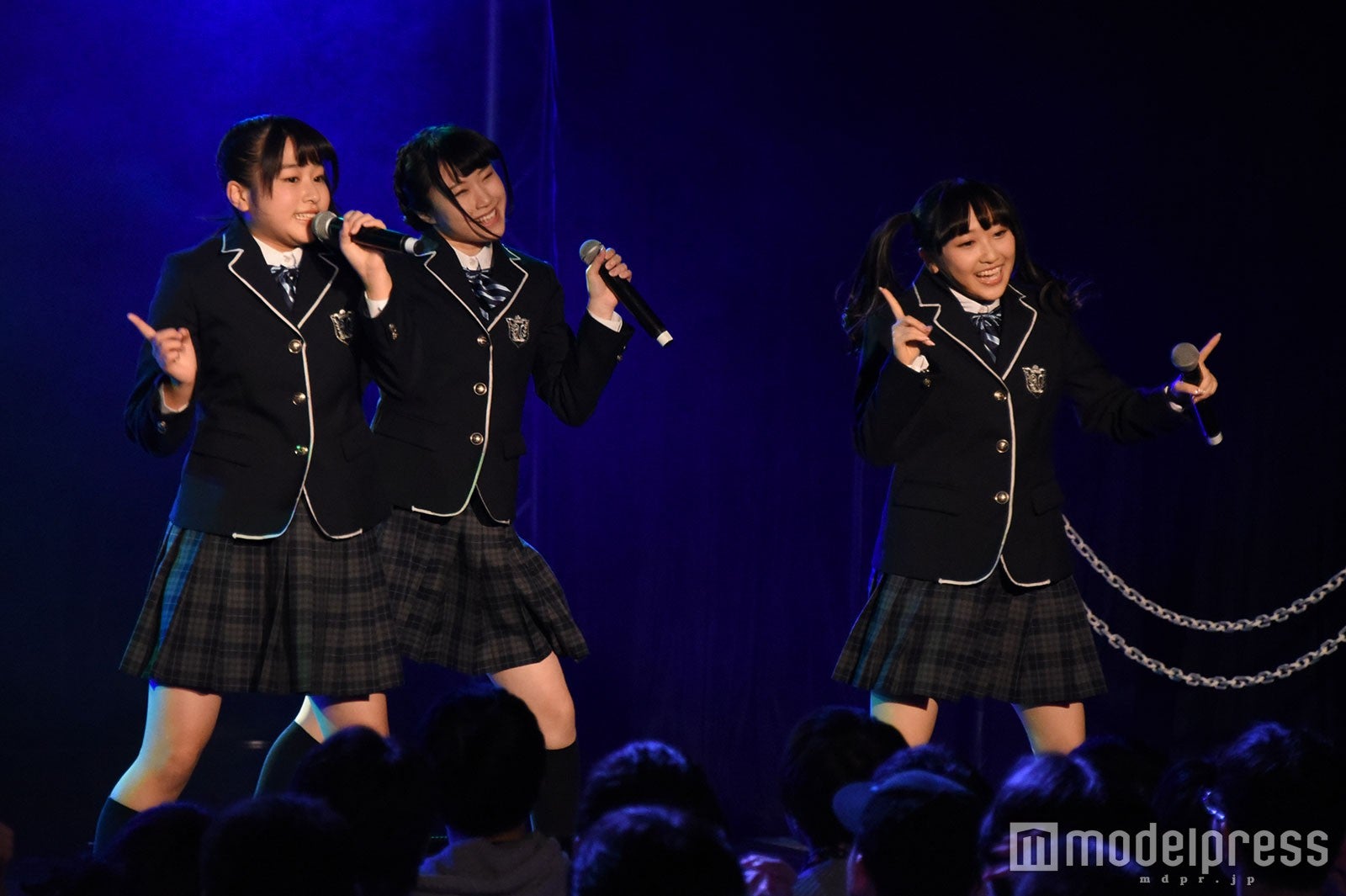7組中の中盤、4組目に登場したのは、放課後プリンセス。1曲目の初めに「みなさん、盛り上がっていますか!」と会場を煽り、一気に雰囲気を自分たちのものに。放課後プリンセスは、16時を境にしてカチューシャはティアラへ、制服衣装はプリンセス衣装へ変わる学園アイドル。イベントは16時以降の夜の時間に行われたが、この日は、キラキラのプリンセス衣装ではなく、パープルのベールをまとったアラビアのプリンセスをイメージした衣装で登場。12月20日発売の新曲『アブラカタブLuv!』を披露し、新たな魅力でファンを虜にした。