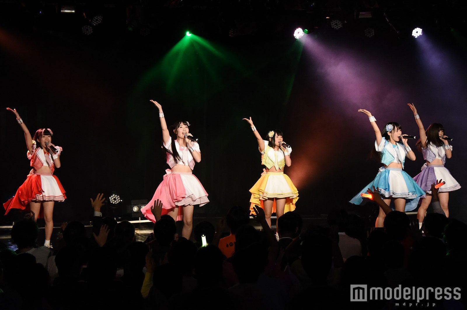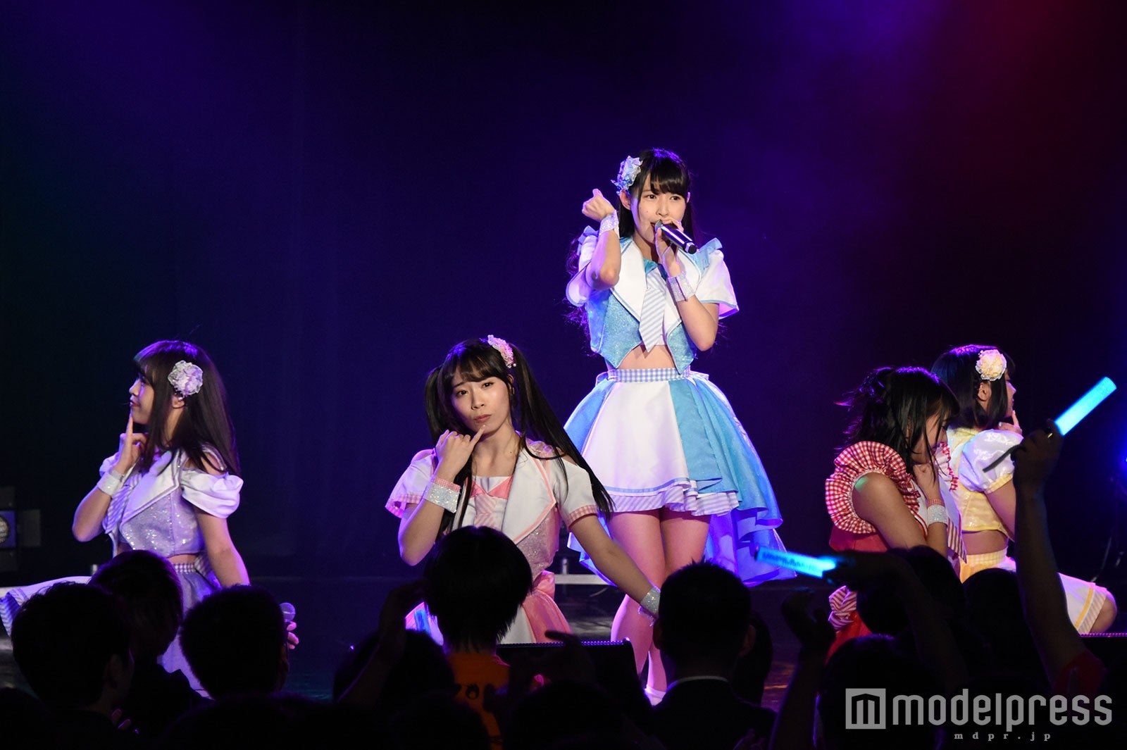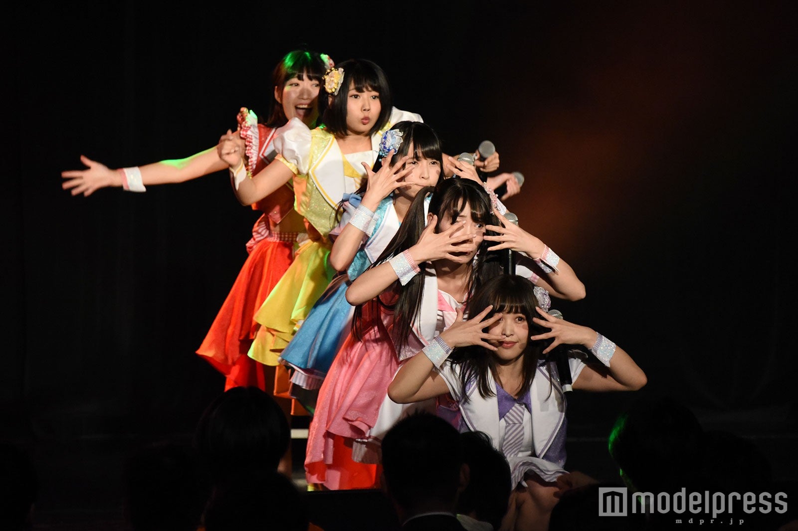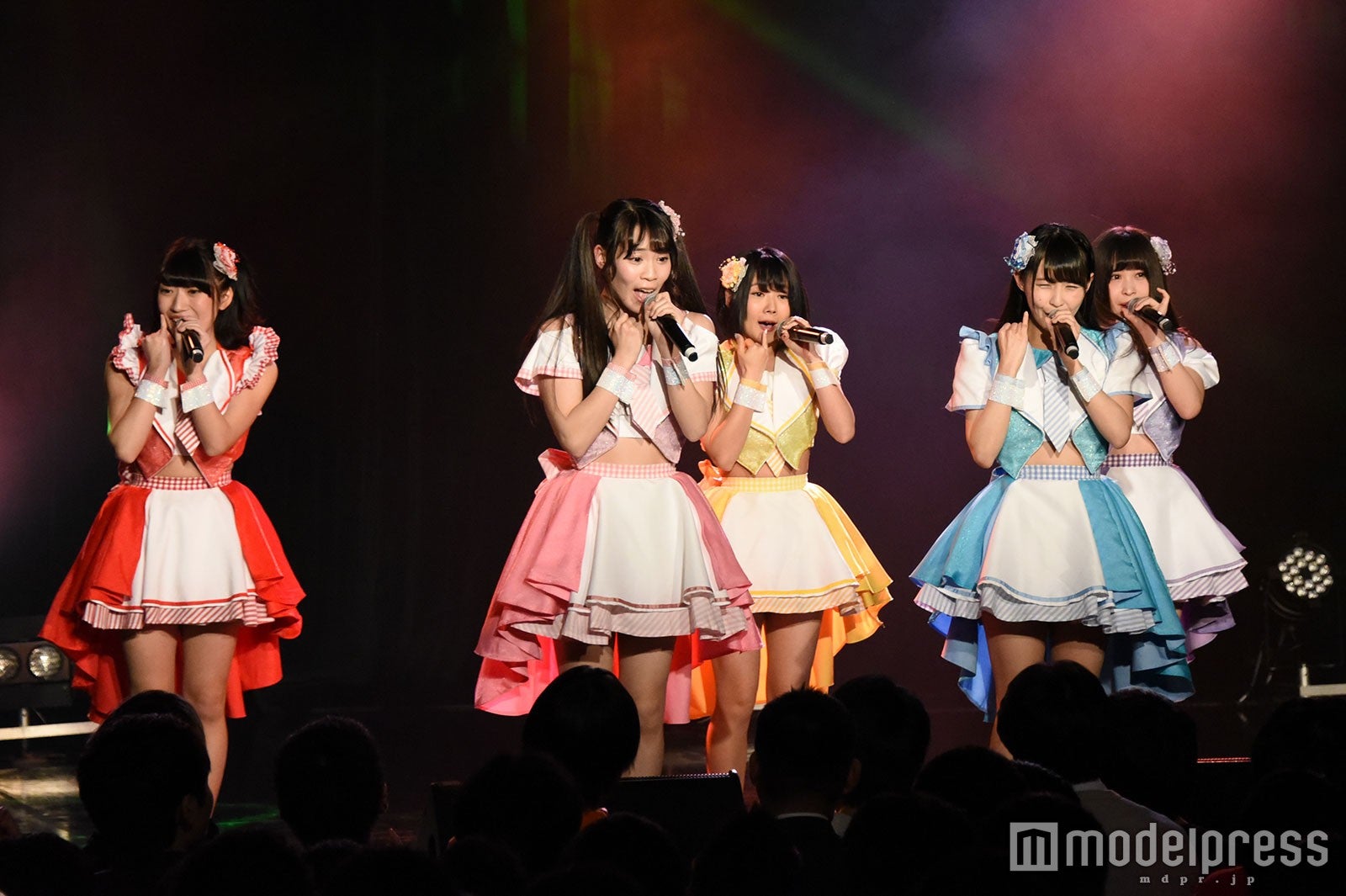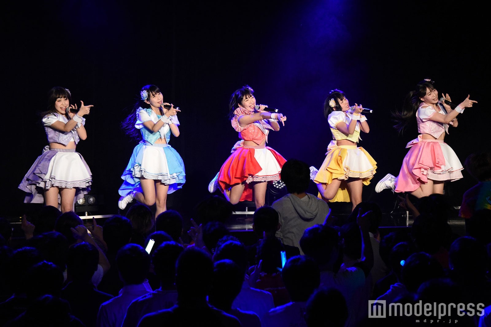 7組中の中盤、4組目に登場したのは、放課後プリンセス。1曲目の初めに「みなさん、盛り上がっていますか!」と会場を煽り、一気に雰囲気を自分たちのものに。放課後プリンセスは、16時を境にしてカチューシャはティアラへ、制服衣装はプリンセス衣装へ変わる学園アイドル。イベントは16時以降の夜の時間に行われたが、この日は、キラキラのプリンセス衣装ではなく、パープルのベールをまとったアラビアのプリンセスをイメージした衣装で登場。12月20日発売の新曲『アブラカタブLuv!』を披露し、新たな魅力でファンを虜にした。