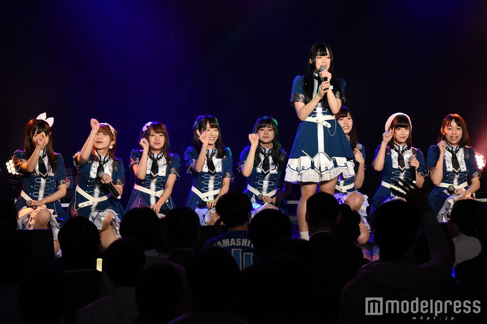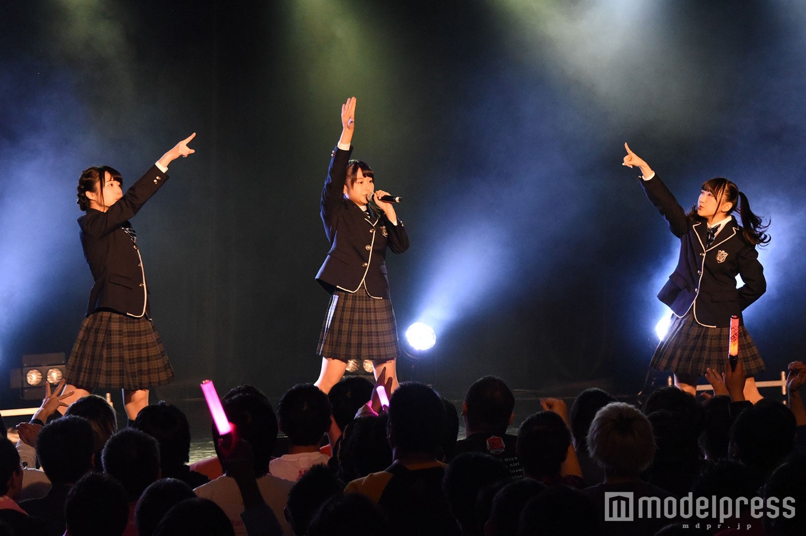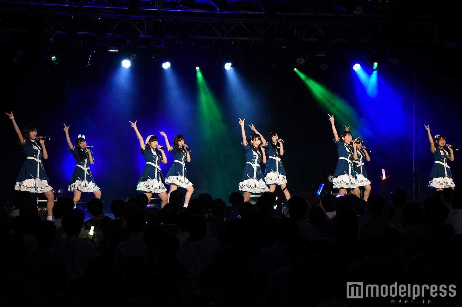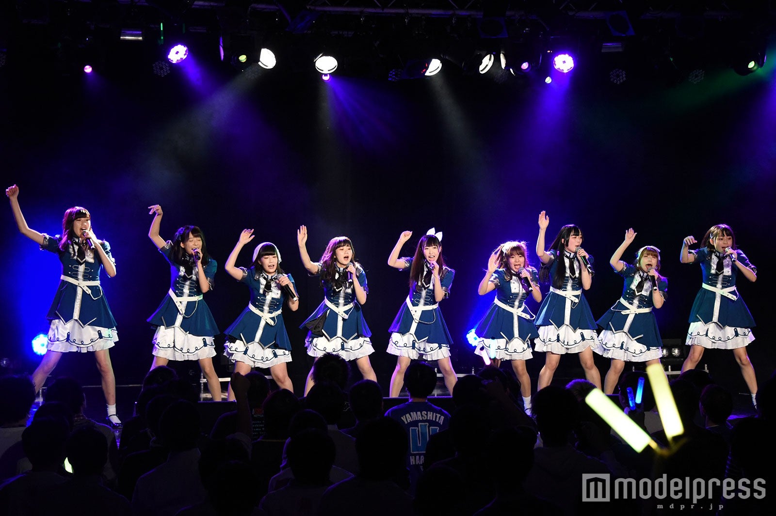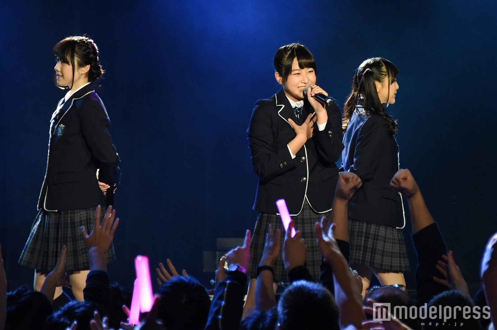 7組中の中盤、4組目に登場したのは、放課後プリンセス。1曲目の初めに「みなさん、盛り上がっていますか!」と会場を煽り、一気に雰囲気を自分たちのものに。放課後プリンセスは、16時を境にしてカチューシャはティアラへ、制服衣装はプリンセス衣装へ変わる学園アイドル。イベントは16時以降の夜の時間に行われたが、この日は、キラキラのプリンセス衣装ではなく、パープルのベールをまとったアラビアのプリンセスをイメージした衣装で登場。12月20日発売の新曲『アブラカタブLuv!』を披露し、新たな魅力でファンを虜にした。