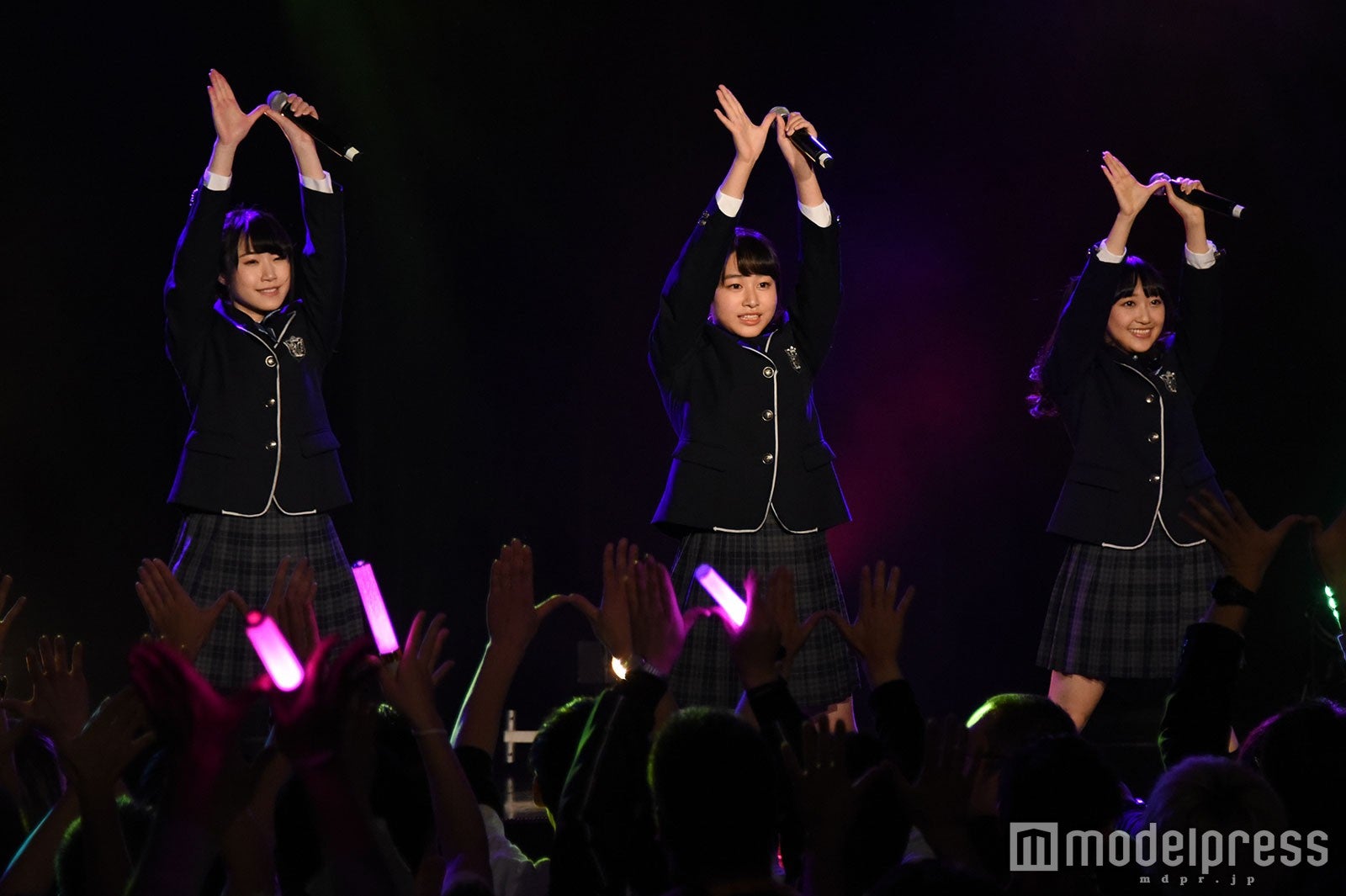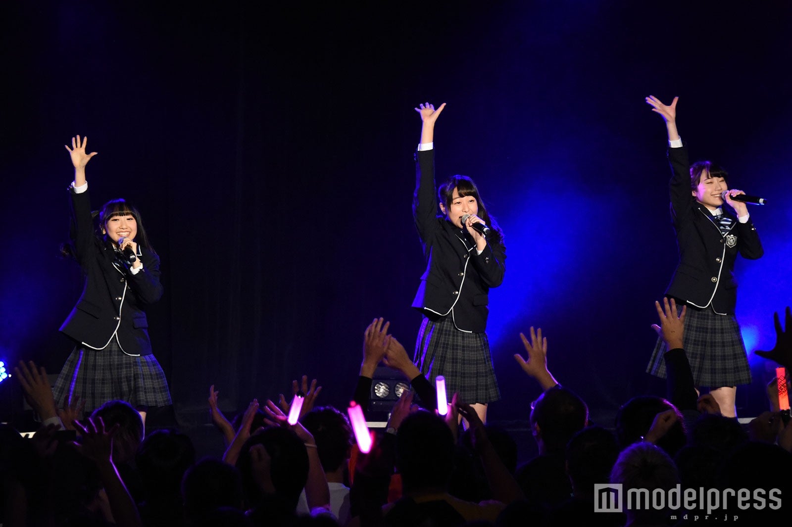 続いては、TVアニメ『Wake Up, Girls!新章』(テレビ東京系/毎週月曜深夜2時5分~)内にて登場するキャラクター3名(速志歩、守島音芽、阿津木いつか)のユニットであり、2000名の応募者の中から選ばれた声優3名(林鼓子、森嶋優花、厚木那奈美)による新進気鋭の声優ユニット・Run Girls,Run!のステージ。3人のシルエットが浮かび上がってくると、会場が大歓声に包まれた。MCでは「こんなに大きなステージで、たくさんの人の前でやるのが初めてなのですが、みなさんが優しいから大丈夫!」と笑顔を弾けさせた。