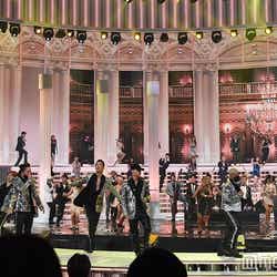 6回目の出場となる三代目JSBは、「HAPPY ~紅白スペシャルバージョン~」を歌唱。スパンコールがまぶしいジャケットにライン入りの黒パンツという衣装で、ステージ前方まで大きく使ってパフォーマンス。